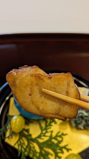 河豚唐揚げ、銀杏素揚げ、鮟鱇肝酒煮、紅おろし、浅葱、ポン酢