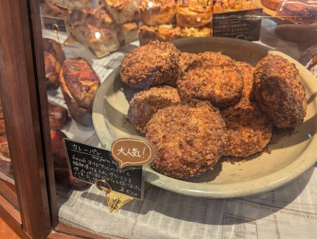 地下へ行く螺旋階段を横目に向かって右側、パンのコーナーでテイクアウト用にパンを選びました