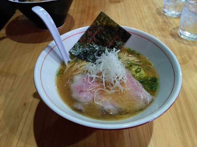 あごだしラーメン(850円) きれいな盛り付け、見えないけどワンタンも一つ入ってて、全部盛りなんだよなー