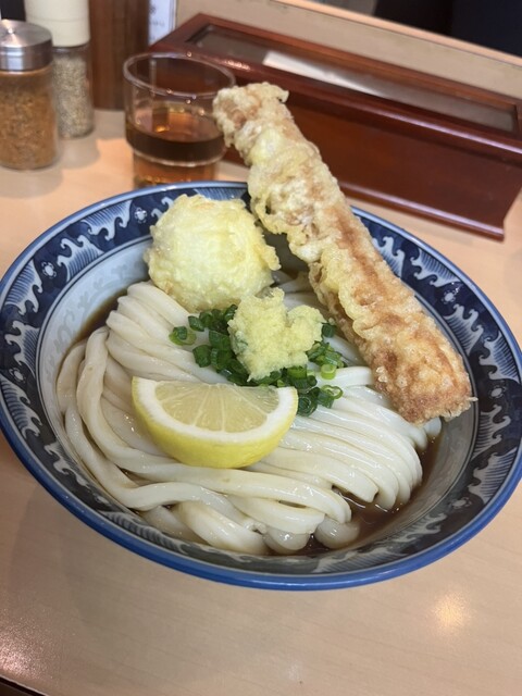 濃いめのお出汁に香り高いうどん、8分の1カットのレモンに生姜におろし大根。なんと言っても外せないカリカリ揚げたてのちくわ天に半熟とろとろの卵天!!!全体のバランスが完璧で880円でこの感動はここ以外ありえないと思うほどのクオリティです(^^)皆様も大阪駅にお寄りの際は是非!感動をお約束します!