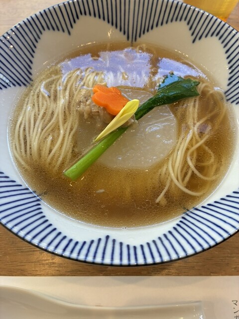 前菜(今回はスープ)、鴨ネギ皿、鴨だしラーメン!のコース仕立てになっています。