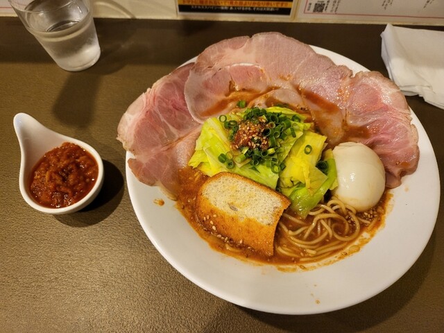 海老トマト麺 チャーシュー キャベツ 増 オーガニックサルサ トッピング