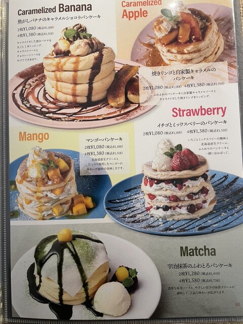 焦がしバナナのキャラメルショコラパンケーキ2枚1,188円+アイスコーヒー539円を注文。