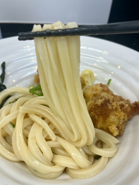 麺の独特のノビがすごく良いです。トリ天もジューシーで最高。