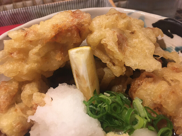 麺には独特のコシがあり、とり天はとてもジューシー。
