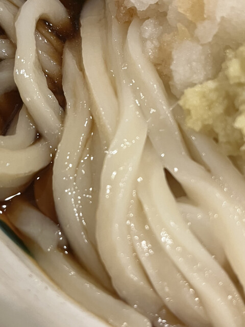 阪急梅田駅から徒歩6-7分の所にあるうどん屋。18時10分過ぎに到着。外待ち5人いました。20分余り待って入店。とり天ぶっかけ980円を注文。大盛りは1000g徒歩なるのでいつも普通盛りを注文。女性の方は、麺少な目を注文していた人もいました。こちらのお店が、とり天ぶっかけ発祥の様でして、5つ入ったとり天は、とてもジューシーでかなりの美味しさです。麺は太くは無いのですが、口当たり良くて独特のノビ(粘り)があり、とても大好きな麺です。とても満足度か高いうどんです。