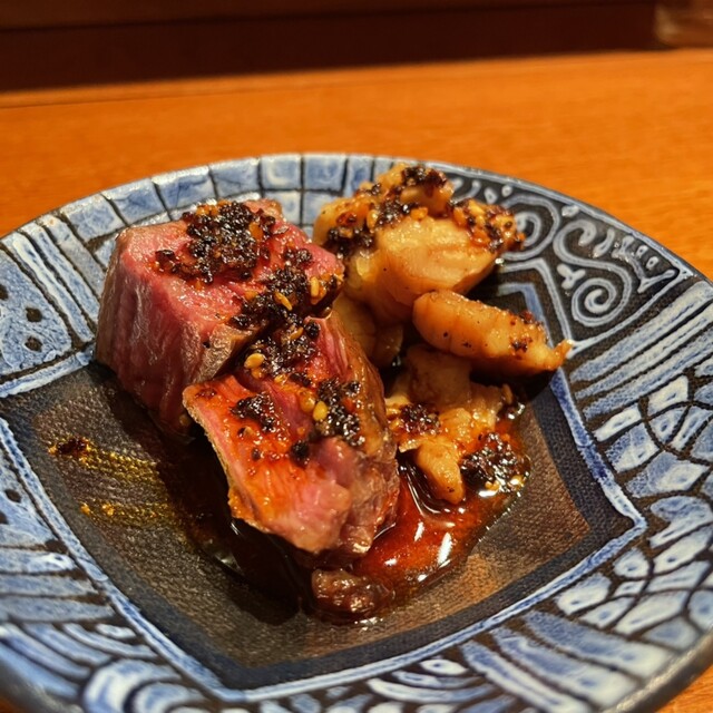 お任せコース 16500円 ハラミとミノのタレ焼き
