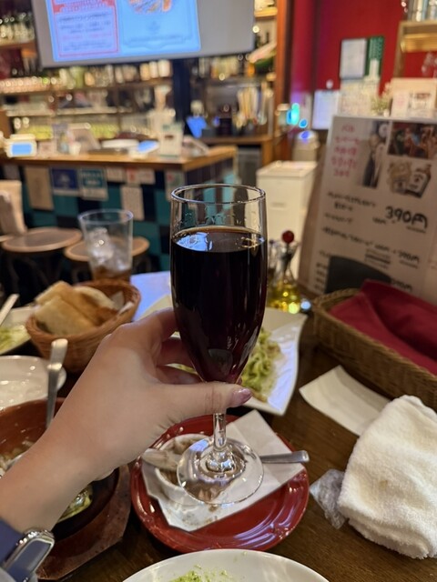 そこに、平日でありながら活気があるお店がございました。イタリアンで、ワインがおいしい!!!隣はワインのお店があり、そこで購入し、持ち込むことができます^_^