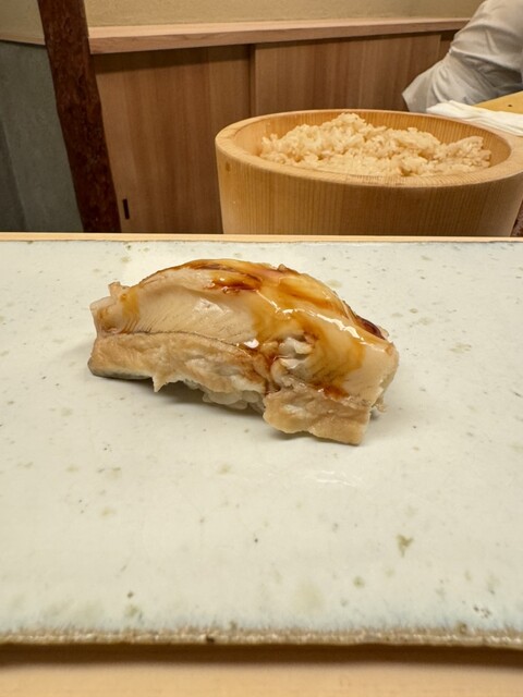 さかいさんは定期的に伺ってるけどご縁に恵まれず「鮨我邦人」で立ってる時に一度も伺えなかったので、初めての大将のお寿司でした。