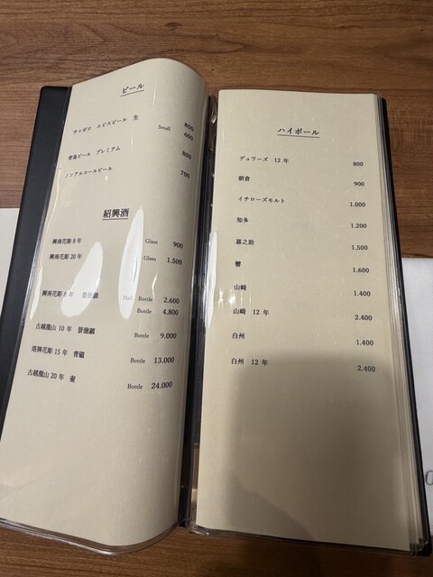 ドリンクメニューはワイン,紹興酒、ウイスキーと一通りありました。