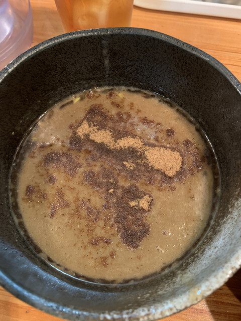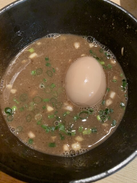 スープ割りは魚介スープで薄めてくれて薄くも無く濃くも無く丁度良い加減でした!半熟卵と相性がバッチリ。