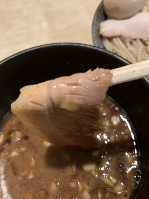 麺をつけて食べると麺にスープと魚粉がしっかりとからんで来てこれも最高でした。