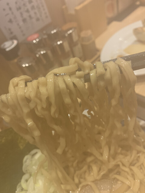 麺はゴワゴワワシワシのオーション麺コシがあって噛むと小麦粉の味がしていました。