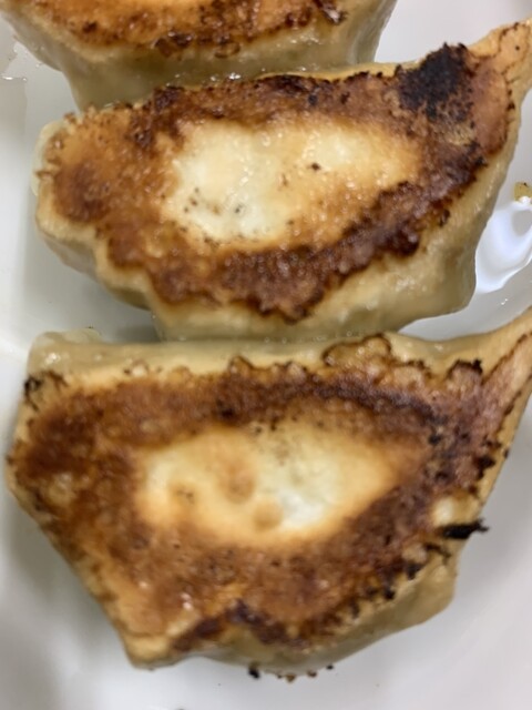 餃子 皮はモチモチで具は肉多めと野菜とニンニクが