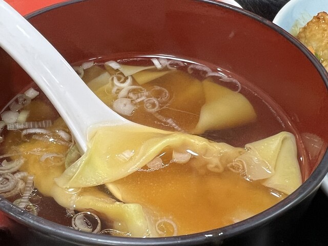 定食だと、おかわり自由のご飯、ワンタンスープ、小鉢(切干大根、今回はこれでした)等付いている