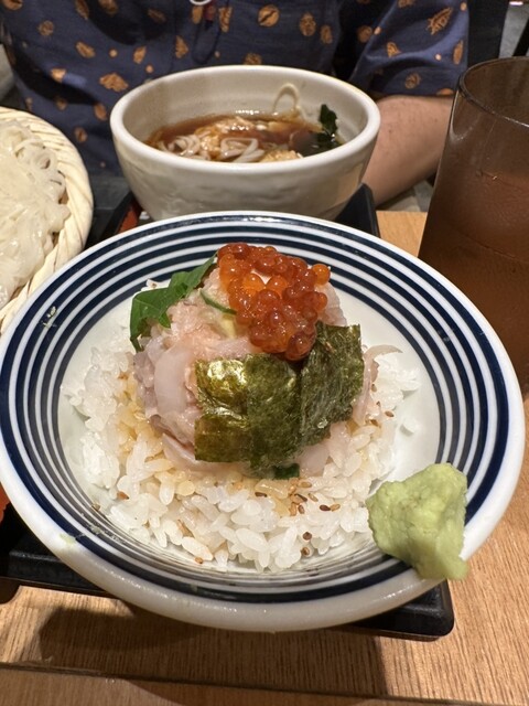 稲庭うどんを夫は大盛りにしたけど、少し笑うほどたっぷりだった。夫はつじ半の海鮮丼、私は金子半之助の天丼をつけた。アマダレで美味しい。