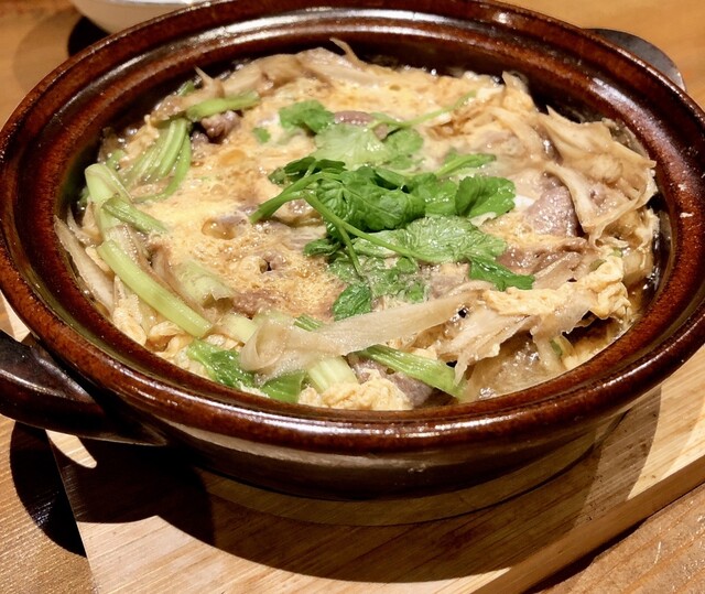 かつお出汁のかおりがよい柳川、牛のうまみ、ごぼうの滋味、さっぱりとしたせり、出汁の風味、卵ととじのまろやかさが一体となったセンスの良さをかんじる一品