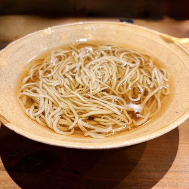 こちらには何度もかよっていますが、あらためて気づいたこととして、どのお料理も味付けがとてもやさしく、そして、やわらかい。さりとて、素材本来の味をしっかりとして引き出しており、いただいていて、温かく、穏やかな気持ちとなります。天ぷらはうすい衣で揚げられており、腕も確かですね。なによりも水腰蕎麦がすばらしい、加水率が高く、扱いが難しいとおもいますが、見事に切りそろえられた切り口、そして何よりも比類のないしなやかさ。店主の方の個性、独自性がしっかりと蕎麦に表現されているな、と感じています。
