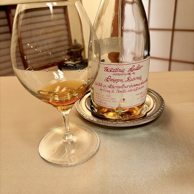 オークで5年間熟成させたグラッパ、樽の余韻がひろがりスコッチのような風味、グラッパの概念がかわるような逸品