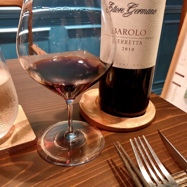 ◎ バローロ(2010、しなやかななめし皮のような口当たり、力強いタンニンの芳醇なうまみが広がり鴨の脂とうまみを引き立ててくれる)