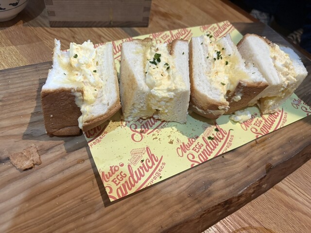 黒板に隙間なく書かれているメニューの中から選ぶことができるようですが、まずはマグロの刺身が早くでるとのことなのでオーダーし、あとは塩パンのサンドウィッチなどなどいろいろ頼みました。