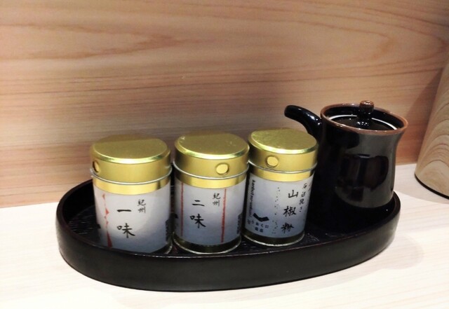 一味、二味は一味と山椒のブレンド、山椒、出汁醤油