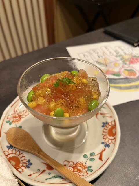 先付けから楽しく、お刺身も新鮮、鮑は1人ひとつで調理方法を選べます。お刺身とバター焼きにお願いしました。バター焼きの方が私は好みでした。