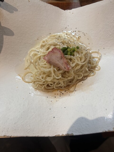 ラーメンいづる初来店です。いづるつけそば特盛(大盛り券二枚)を注文。透明感と繊細さがあるつけそばの麺。スタッフの方に聞いたところ、500グラムほどあることを知りました。食べやすいし食べ応えのある量でした。