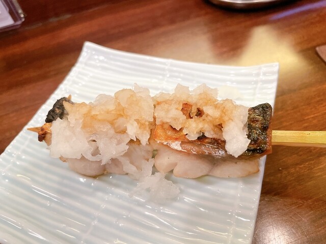 鮭ハラスの鬼下ろしポン酢串。