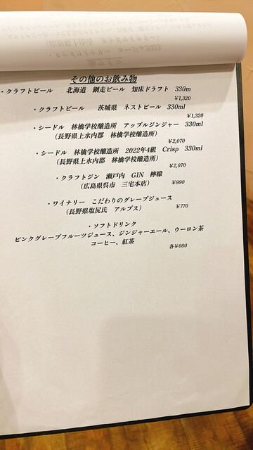 知床ドラフトビールから始まり、ワインはその都度シェフにお任せで色々と。