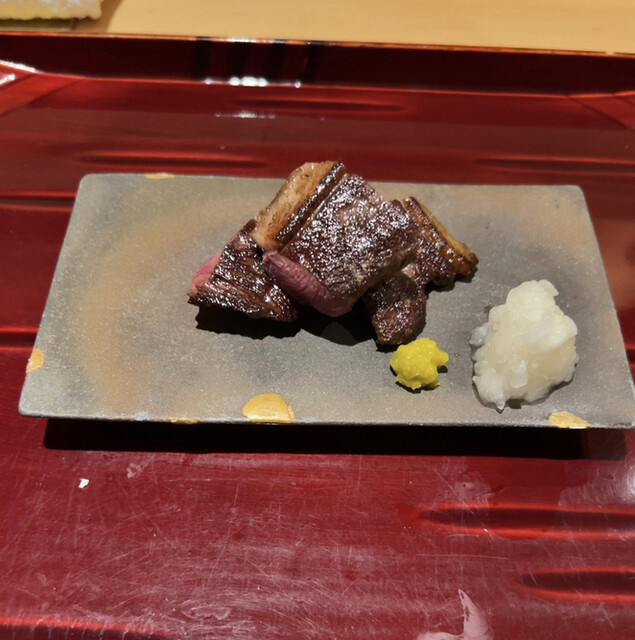 玉鋼で焼いた青首鴨 自家製柚子胡椒 大根おろし