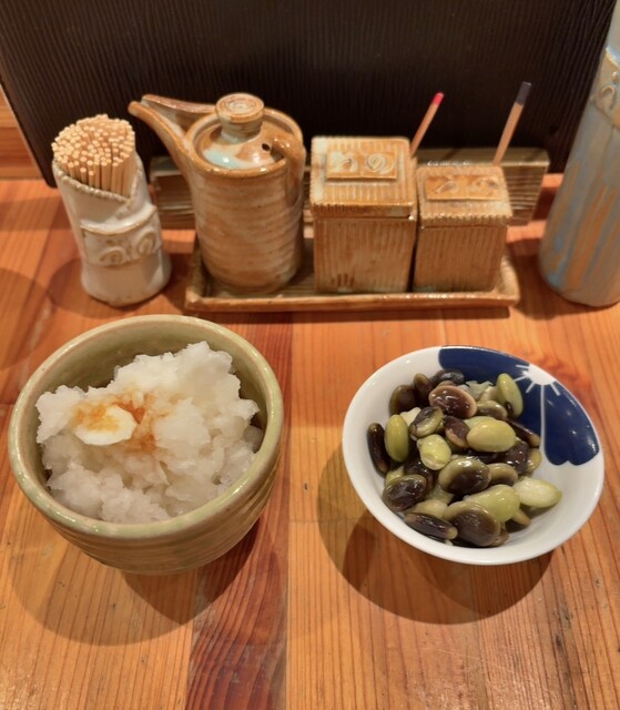 • お通し くらかけ豆の塩茹で 口直し 大根おろし