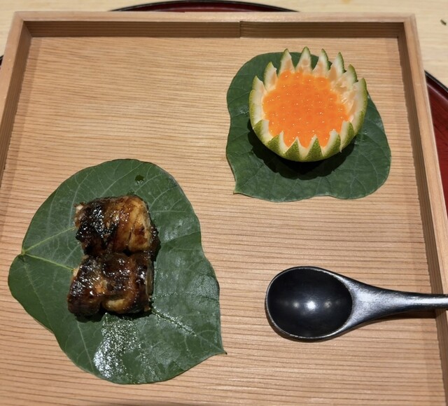 ⭐️⭐️鰻八幡巻き 蝦夷鮑.下に肝ソース