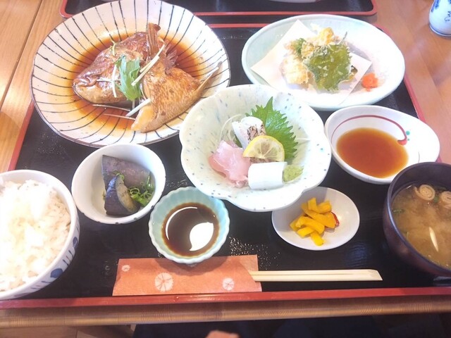 相方は潮彩御膳2,000円、お造り、鯛のあら炊きに天ぷらが付きます。これも美味しそうでした。