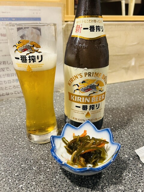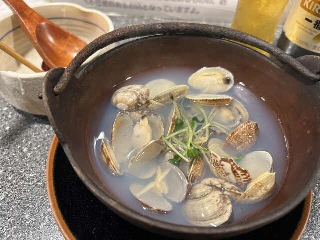 瓶ビールにアサリの酒蒸し
