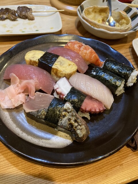 おいもの天ぷらとか、骨せんべいとか、ちょこちょこサービスで出していただける。