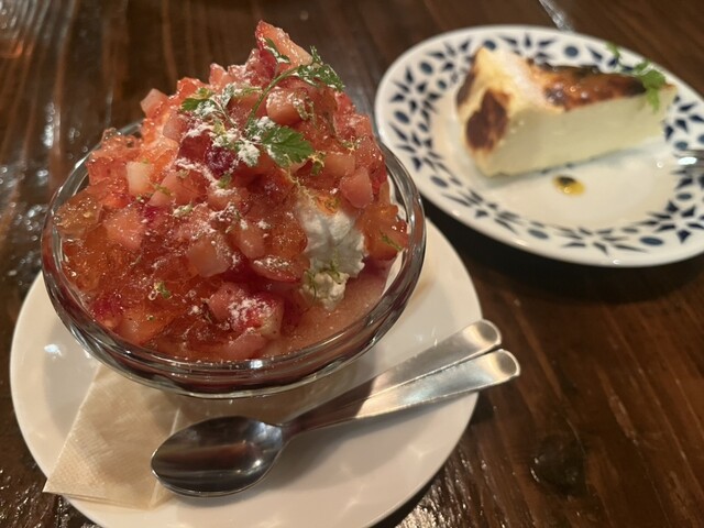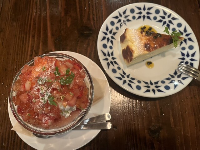 バスクチーズケーキは定番の人気メニューで、苺のクレームダンジュも酸味と甘みが絶妙にマッチして美味しかったです\(//∇//)\♡