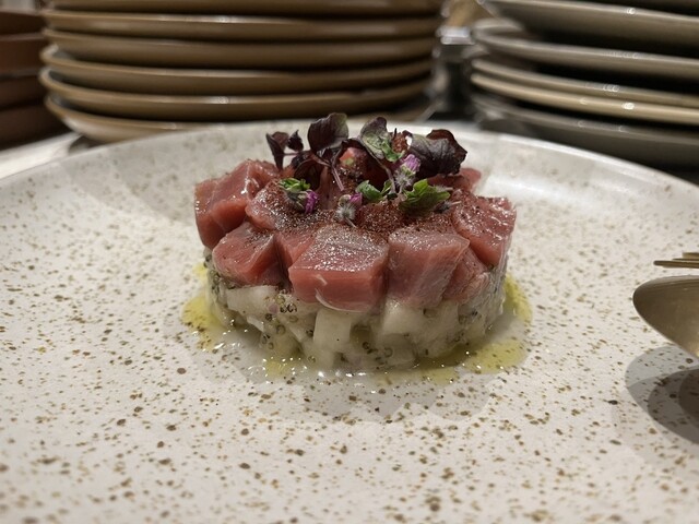 季節のタルタルはまぐろと洋ナシのタルタル。見た目の美しさはもちろん、これが絶品!!♡
