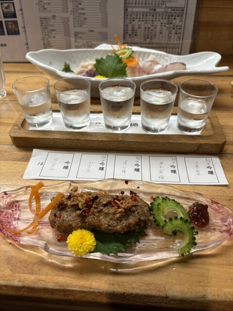 さすが新潟!いろいろな種類の日本酒があるので、何を頼めばいいのかわからず、おまかせの飲み比べセットをお願いしました。