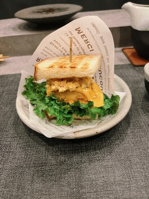 追加の串を2品の後、名物のチキンカツサンド‼️