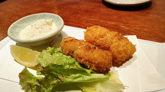 テーブル席で4人、それぞれが手に取りやすいよう串の向きが交互にお皿に並べられていました。