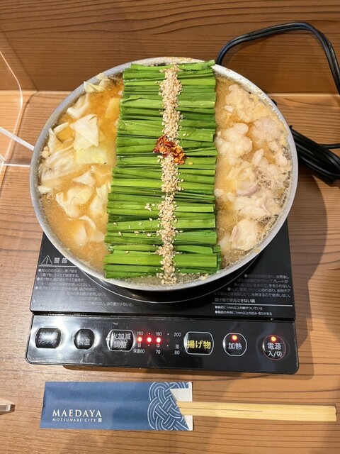博多駅徒歩圏。平日昼なのに数えたら広くない通りに21人の行列。1人用カウンターも数席。予約してよかった。1番人気のみそ鍋税込1958円を注文。