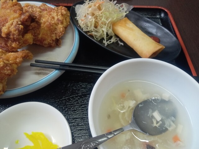 若鶏の唐揚げランチうま〜