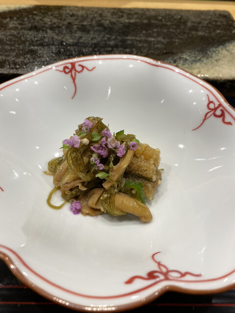 ○北海道産つぶ貝と愛知県ミルガイのづんだ和え、ねりごまの醤油和え
