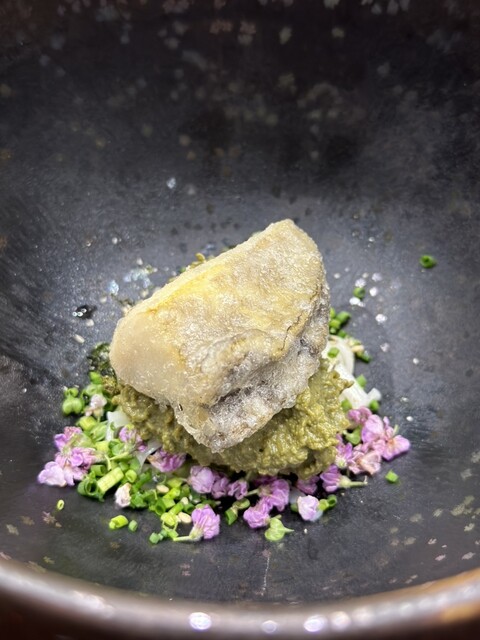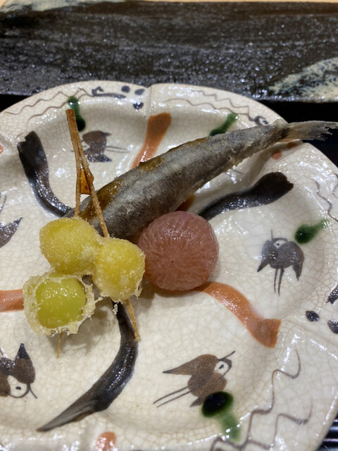 愛知 目光薄衣揚げ 銀杏と酢葡萄を添えて