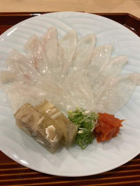 大型天然虎河豚(雌)のお刺身、にこごり
