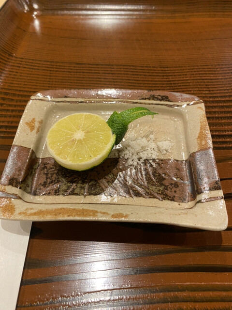 (朝獲れの新鮮な虎河豚の白子。大きく切ってあり濃いめの塩が最高に合います!最高でした)