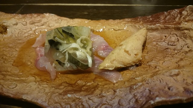 カウンター席が10席くらいに、6名くらいのテーブル席がある。店主一人で切盛りしているようだ。その日に仕入れた食材を出すのでメニューは決まった物はなく、コース料理のみ。されど怖がることなかれ。すごく良心的なお値段。