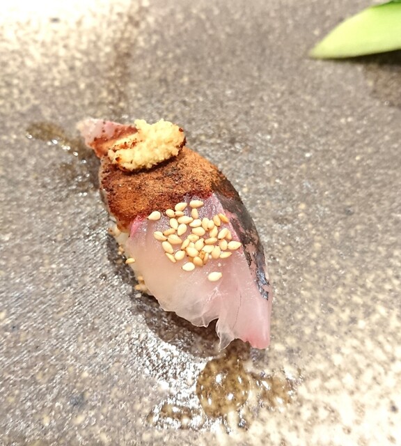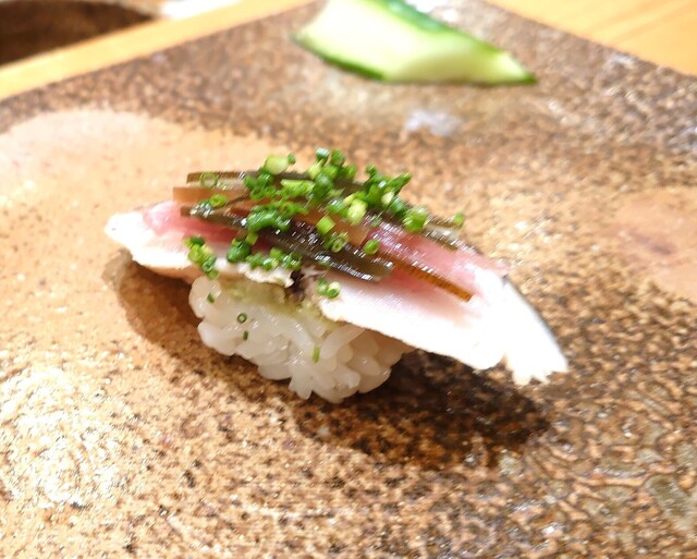 九州の柑橘類の香りが鼻から抜けると同時に握りが口の中でほろりと解れ、なんとも言えない余韻が残る。