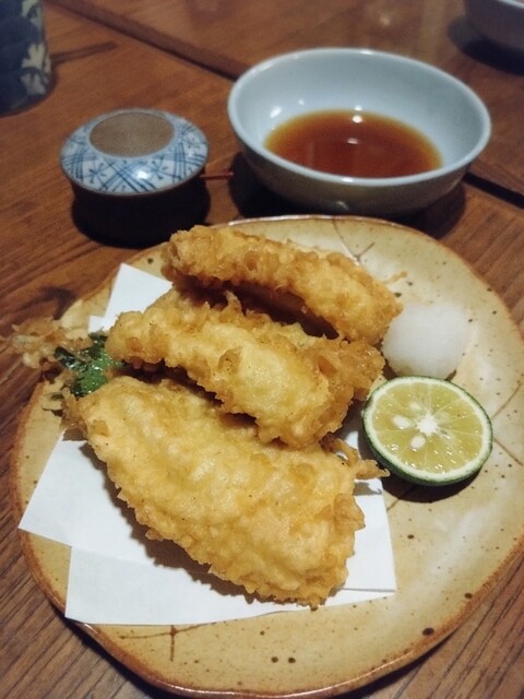 アナゴの天ぷら、流石天ざる天盛り発祥のお店、サクサク脂っこくなく、天つゆも美味(ฅฅ*)